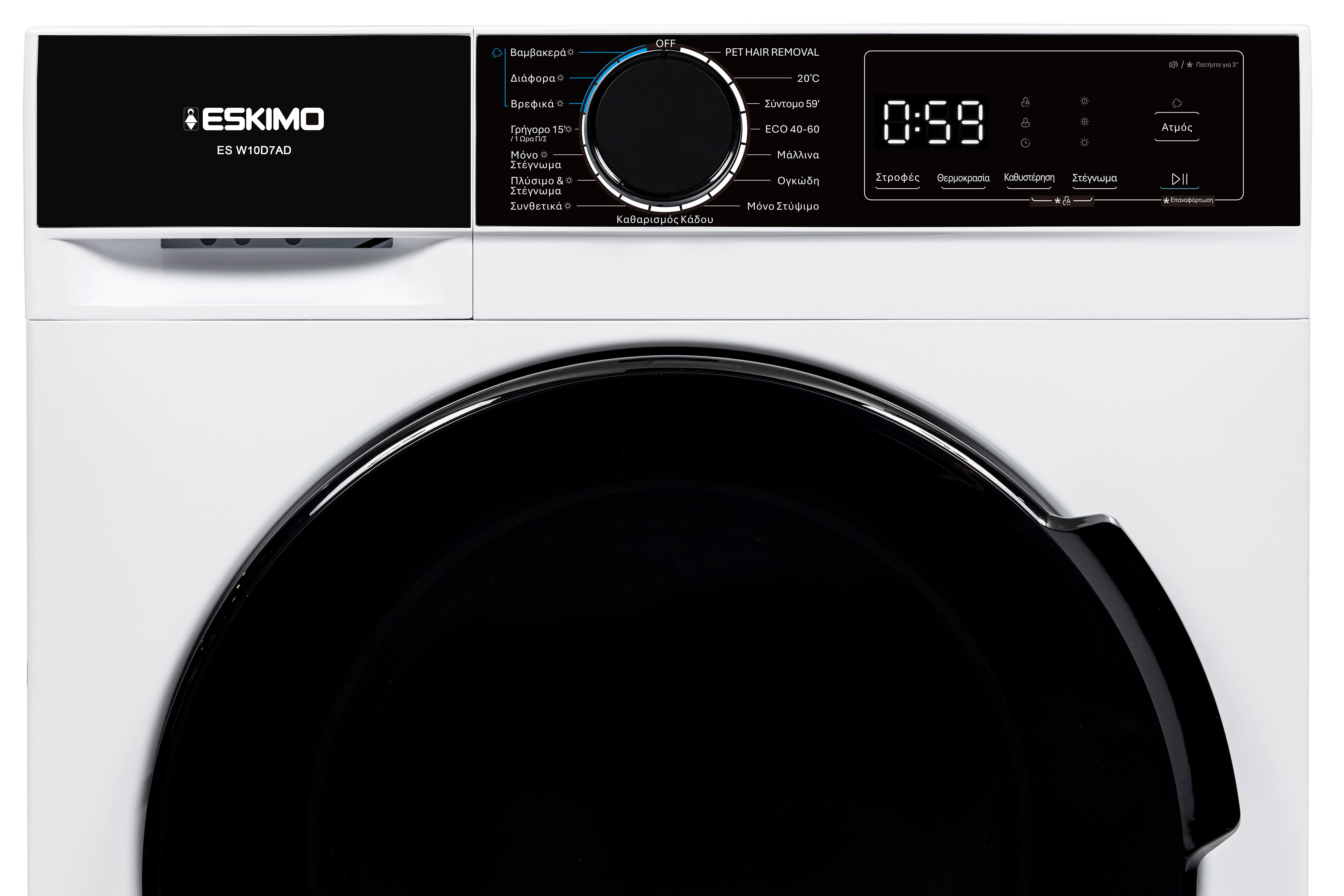 Πόρτα: Διάμετρος 48 cm, είσοδος ρούχων 33 cm, άνοιγμα έως 170°