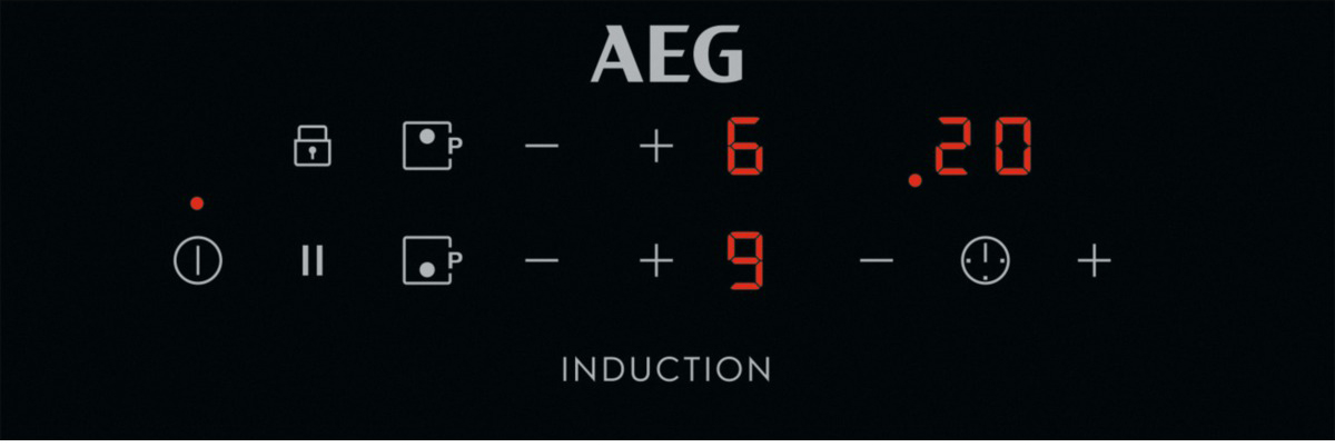 Τα στοιχεία ελέγχου αφής στις επαγωγικές εστίες AEG διαθέτουν κουμπιά συν ή πλην για αποτελεσματικό έλεγχο θερμοκρασίας καθ' όλη τη διάρκεια της διαδικασίας μαγειρέματος.