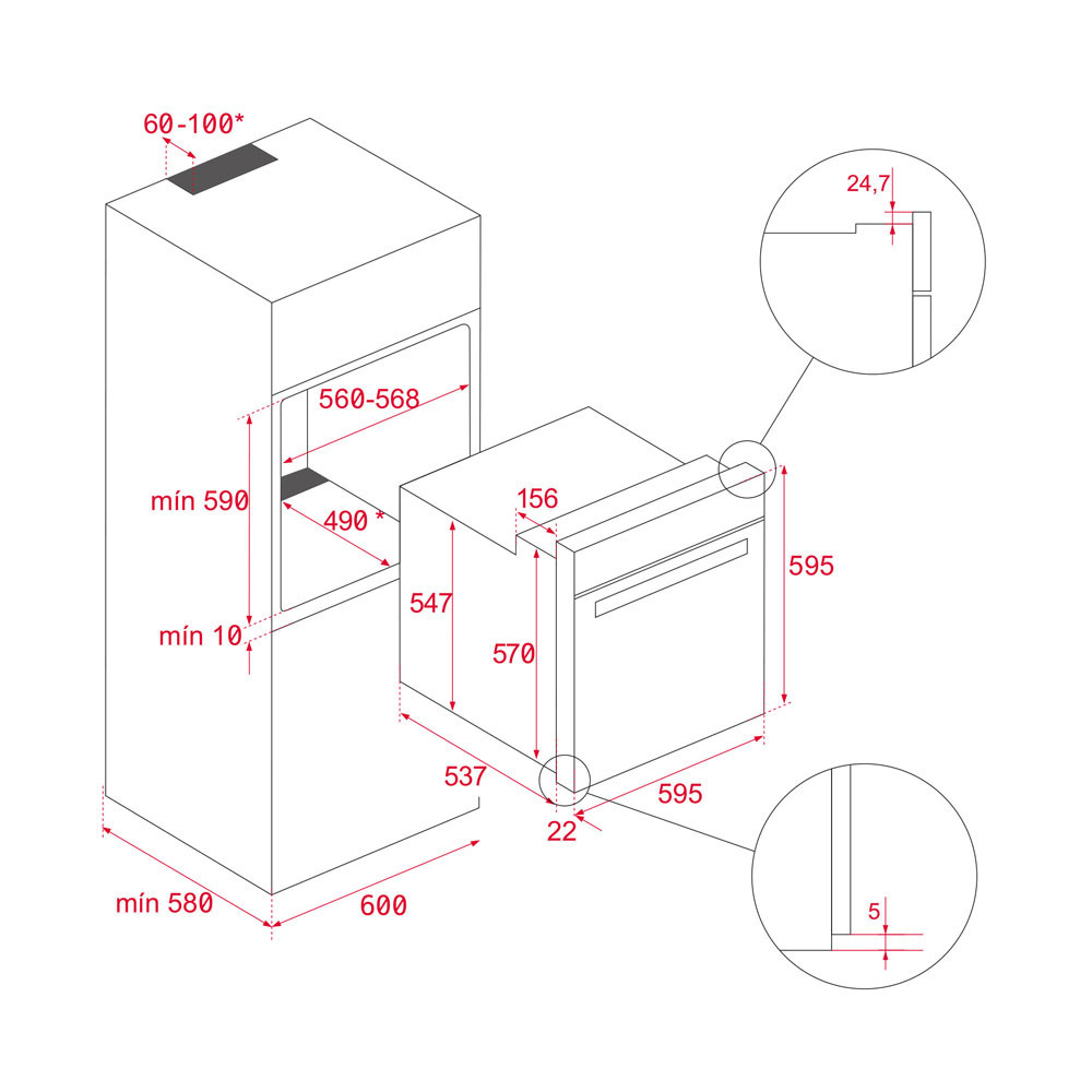 Εξωτερικό (ΥxΠxΒ mm) 595 mm x 595 x 559 (537 + 22)