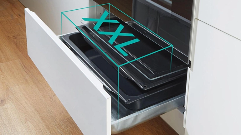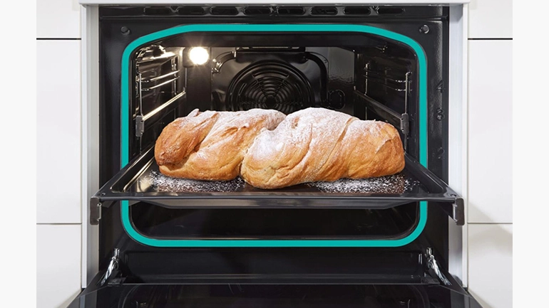 Χάρη στην πρωτοποριακή λύση, το εσωτερικό είναι μεγαλύτερο και χρησιμοποιείται ολόκληρο το πλάτος του φούρνου. Υπάρχει περισσότερος χώρος σε κάθε ράφι ψησίματος, ενώ η χρήση εξελιγμένης τεχνολογίας εξασφαλίζει ομοιόμορφο ψήσιμο του φαγητού σε όλα τα ράφια.