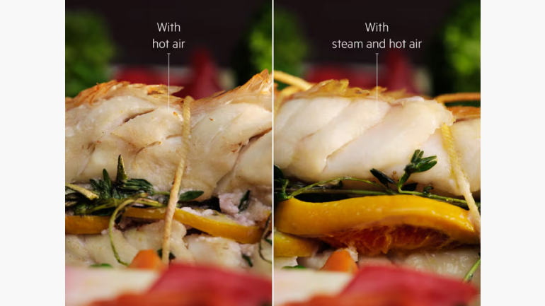 Ο φούρνος πολλαπλών λειτουργιών SteamCrisp® συνδυάζει θερμότητα και ατμό για να ψήνεις, να ζεσταίνεις και να μαγειρεύεις με ιδανικά αποτελέσματα. Χάρη σε αυτόν τον συνδυασμό, τα πιάτα σου παραμένουν τραγανά εξωτερικά και ζουμερά εσωτερικά — με πιο ζουμερό κρέας και ψάρι έως και 20% πιο τρυφερό σε σύγκριση με έναν συμβατικό φούρνο.